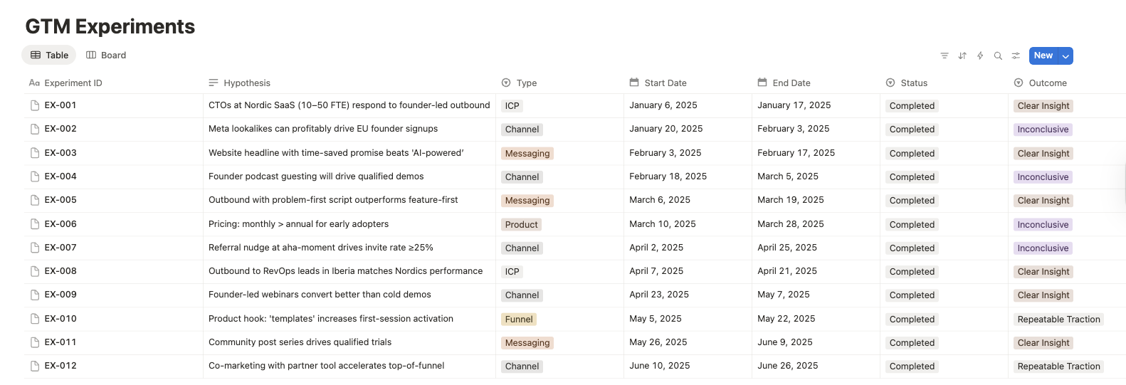 A way to run systematic GTM experiments, learn fast, and prove you can turn insights into traction.
